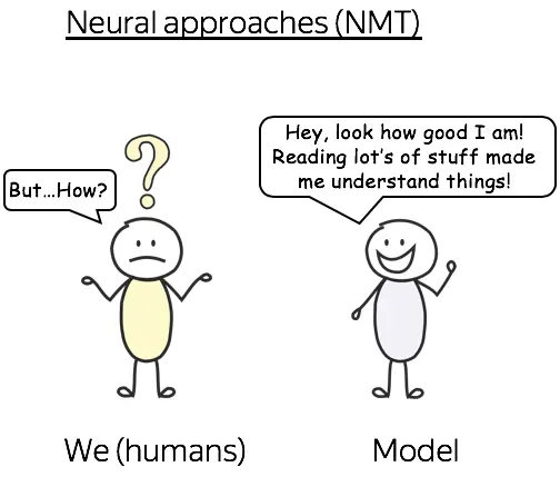 In SMT, model competences are modelled with distinct models. In NMT, the whole translation task is modelled with a single neural network. How and when does NMT get to learn all the competences? We show that